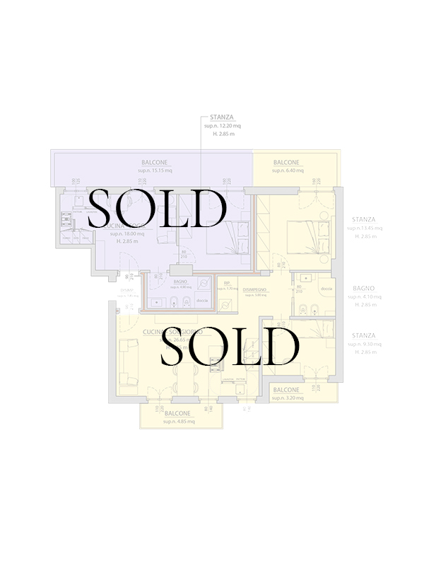 Die Raumaufteilung umfasst ein Wohnzimmer mit Kochnische und Zugang zu einem Balkon, ein Einzelzimmer mit privatem Balkon, ein geräumiges Hauptschlafzimmer mit Zugang zu einem weiteren Balkon, einen praktischen Abstellraum, ein modernes Bad mit Dusche und einen Kellerraum. Möglichkeit zum Garagenkauf. Ideal für Familien oder Paare, die ein elegantes und gut durchdachtes Zuhause suchen.
